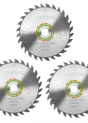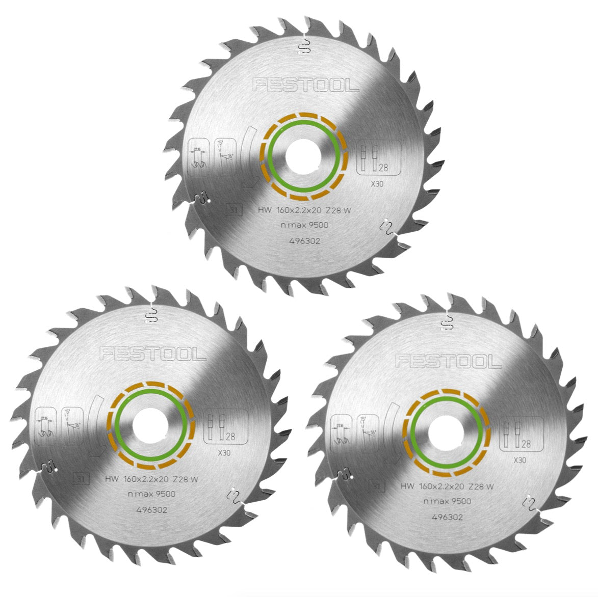 3x Festool Universal Kreissägeblatt W28 160 x 2,2 x 20 mm 160 mm 28 Zähne ( 496302 ) TS TSC ATF AP