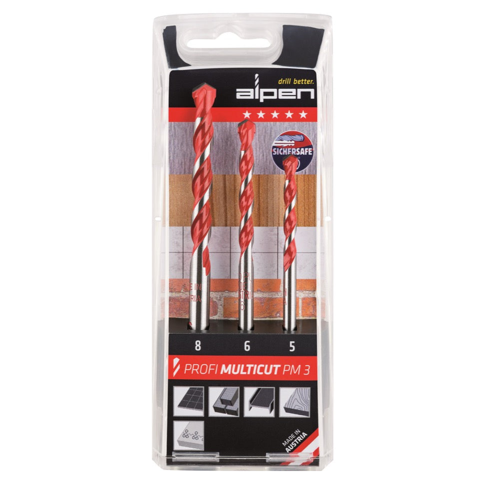 Alpen Profi Multicut PM 3 tlg. Hartmetall Mehrzweckbohrer Set 5 - 8 mm PGM zertifiziert