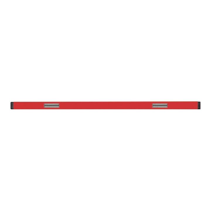 aus Aluminium · Oberfläche rot, pulverbeschichtet · mit Gummiendkappen als Stoßschutz und spiegelfreie Rundlibelle · ab 180 cm Länge mit zweiter Vertikallibelle · Messgenauigkeit in Normalposition ± 0,5 mm/m, in Umschlagposition ± 0,5 mm/m