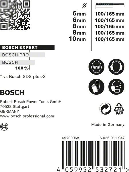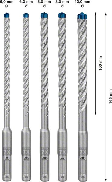 - 5x Bosch EXPERT SDS Plus-7X Hammerbohrer 165 mm ( 2x 6 / 2x 8 / 10 mm )