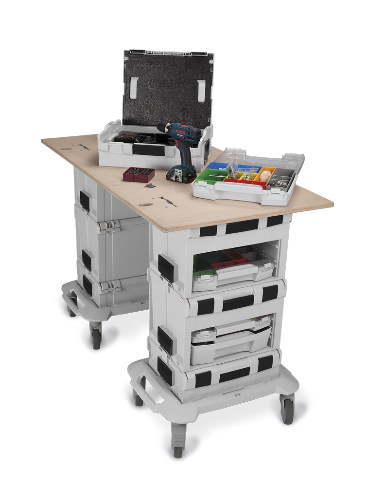 Die mobile Arbeitsplatte 1400x700 LB ist eine leichte und stabile Multiplex-Arbeitsplatte, die sich ideal für den Einsatz in Werkstätten und Baustellen eignet. Dank ihrer vielseitigen Funktionalität kann sie mit zwei darunter platzierten L-BOXXen-Türmen fest verrastet werden und in Kombination mit zwei L-BOXX Rollern wird sie zur mobilen Werkbank.