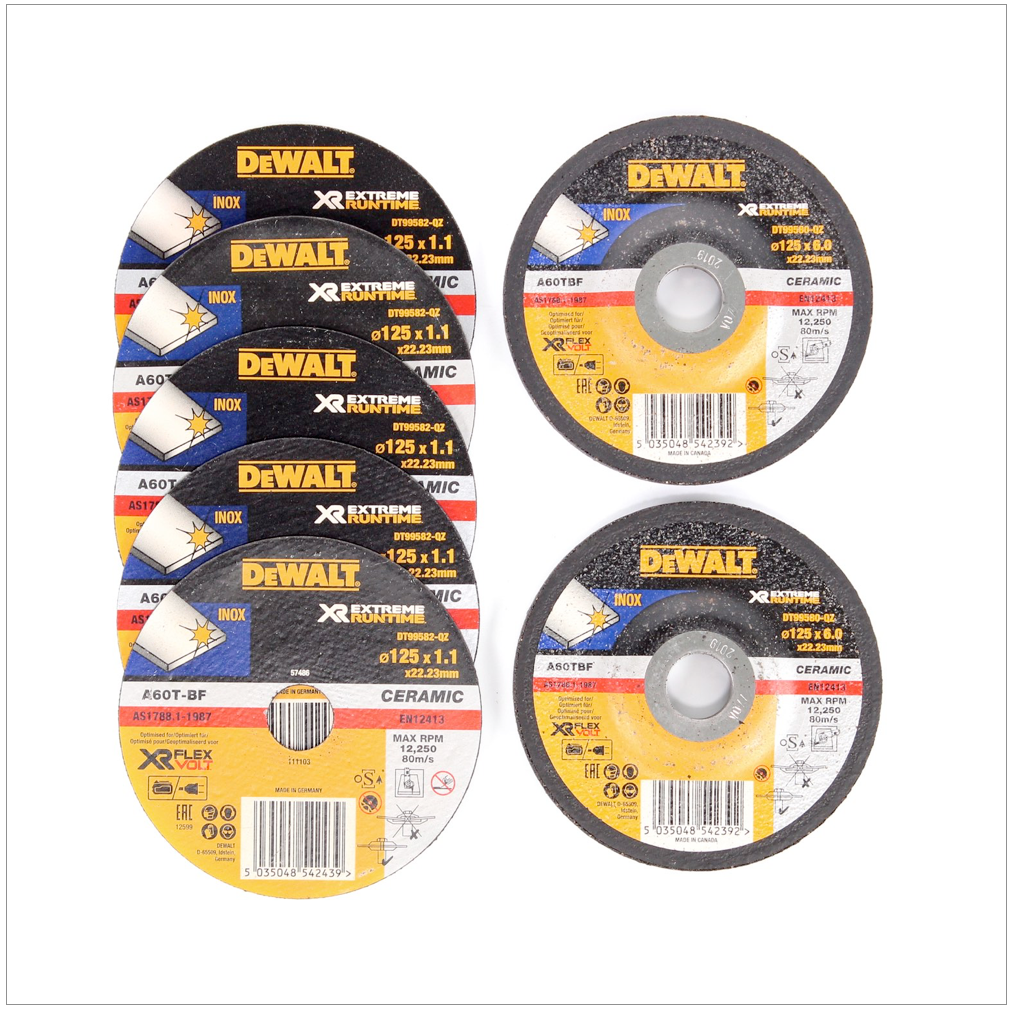 DeWalt DCG 414 T2 Akku Winkelschleifer 54 V XR Flexvolt 125 mm Brushless + 2x Akku 6,0 Ah + Ladegerät + 5x Edelstahl Trennscheibe + 2x Schruppscheibe + TSTAK