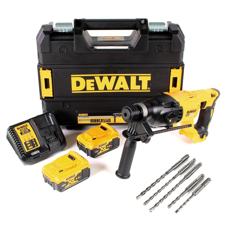 DeWalt DCH 133 P2 Akku Kombihammer 18V 2,6J SDS plus Brushless + 2x Akku 5,0Ah + Ladegerät + TSTAK + 5x Hartmetall Bohrer