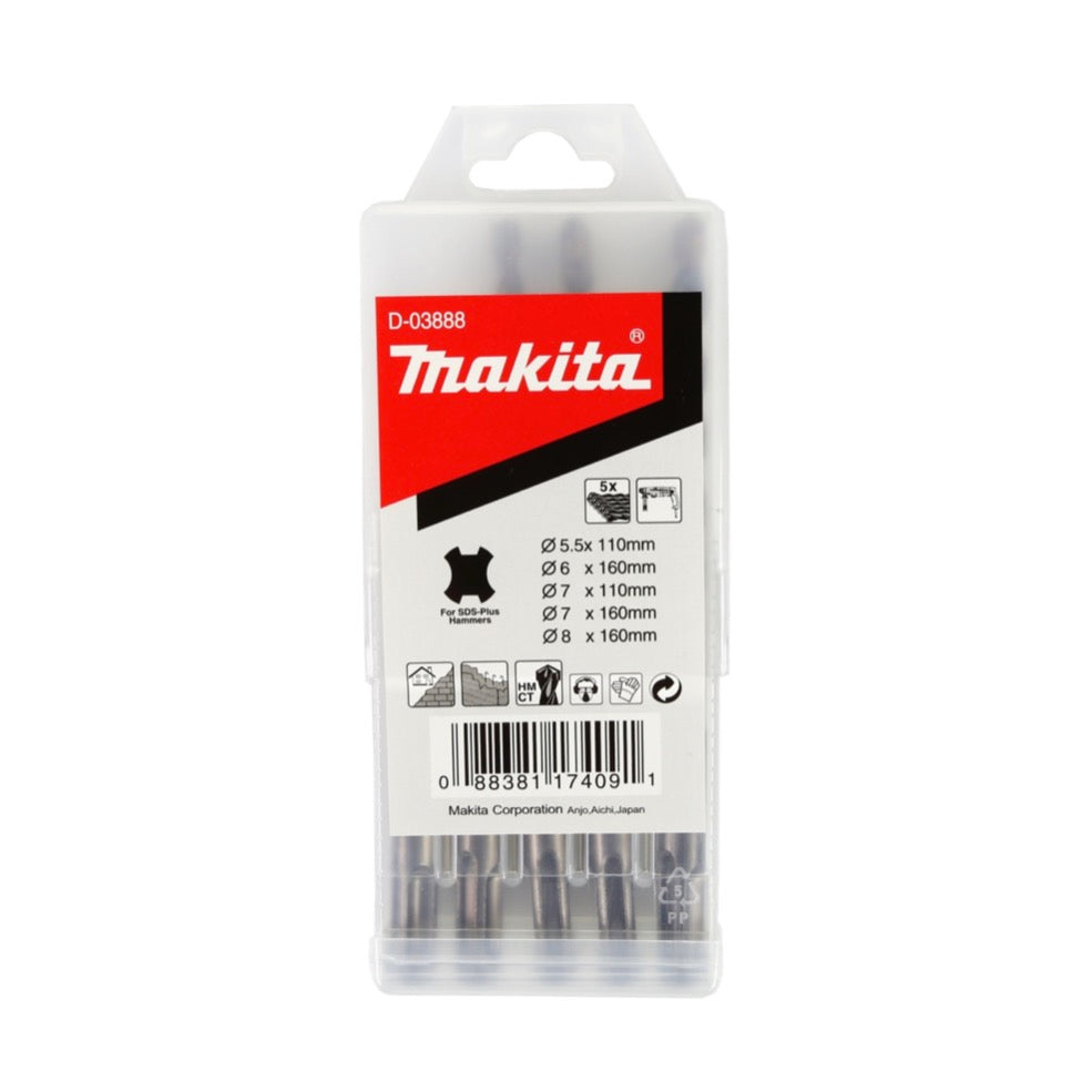 - 1x Makita D-03888  SDS Plus 5 tlg. Hartmetall Bohrer Set für Mauerwerk und Beton