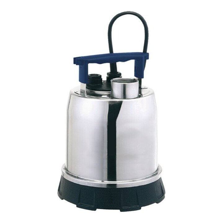 Flachsauger · aus Edelstahl · zur Entsorgung von Schmutzwasser mit Feststoffen bis Ø 10 mm · mit aufsetzbarer Flachsaugvorrichtung bis auf 3 mm Restwasserstand · absolut dauerbetriebsfest · alle Hauptbauteile aus Edelstahl · mit robuster Gleitringdichtung · integrierter Thermoschutzschalter · Rückschlagventil · Korngröße mit Flachsaugvorrichtung max. 3 mm