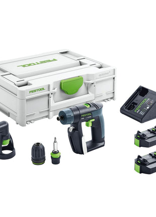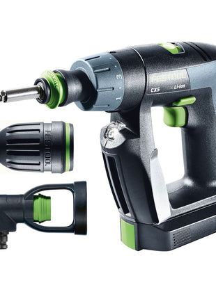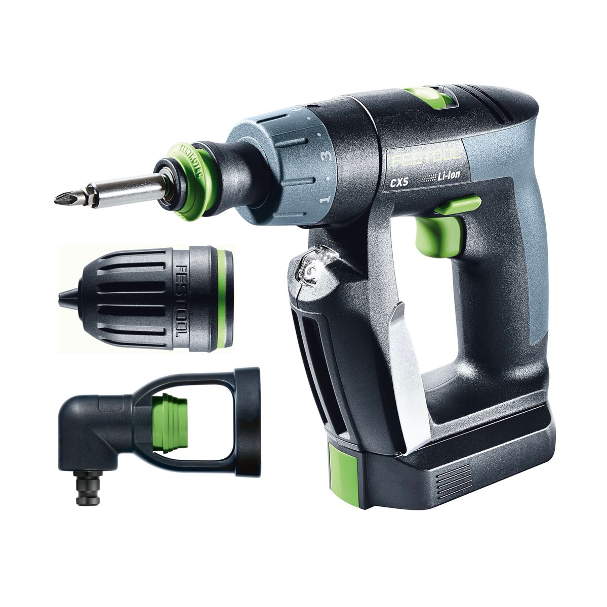 Festool CXS Li 2,6 Plus Akku Bohrschrauber 10,8 V 16 Nm ( 576094 ) + 2x Akku 2,6 Ah + Ladegerät + Winkelvorsatz + Systainer - Nachfolger von 564532