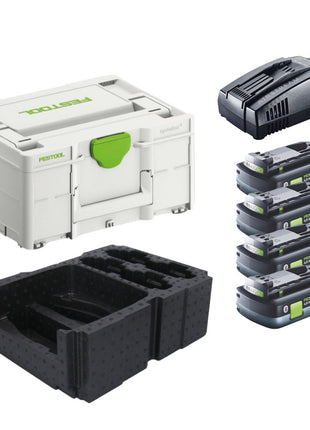 Festool Energie Set 4x BP 18 Li 4,0 Ah HPC-ASI Akkupack 18V 4,0 Ah HighPower ( 4x 205034 ) + SCA 16 Schnellladegerät 10,8 V - 18 V ( 576953 ) + Systainer