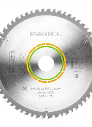 Festool Feinzahn Kreissägeblatt HW 216 x 30 x 2,3 mm W60 216 mm 60 Zähne ( 500125 )