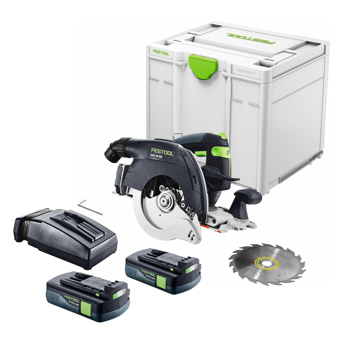 Festool HKC 55 EB-Basic Akku Handkreissäge 18 V 160 mm Brushless + 2x Akku 3,0 Ah + Ladegerät + Systainer