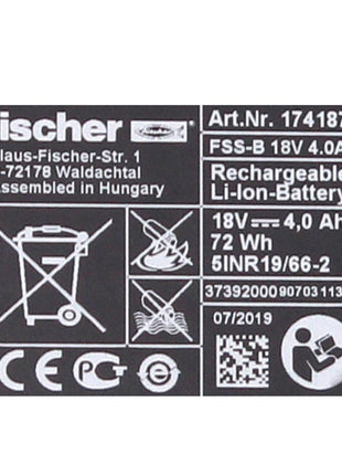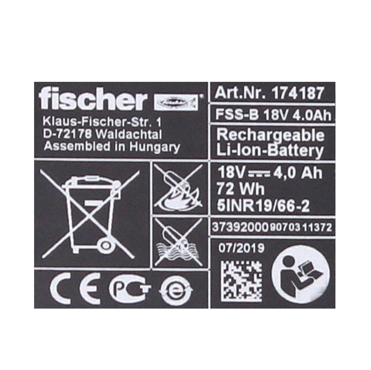 Fischer Akku Set 18V mit 2x FSS-B Li-Ion Akku 18V 4,0 Ah ( 552930 ) CAS Partner