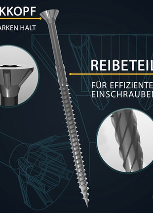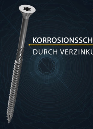 Die FORTE Tools Holzschraube mit Torx Aufnahme garantiert dem Anwender eine hohe Flexibilität durch universelle Einsetzbarkeit in Holz. Der Senkkopf sorgt für eine saubere und bündige Versenkung der Schraube in Holz. Die Torx Aufnahme erlaubt eine bessere Kraftübertragung auf die Schraube, höhere Standzeiten sowie ein schnelleres Einfädeln der Schraube mit zugleich besserem Passsitz am Werkstück. Der Reibeteil ermöglicht ein effizienteres einschrauben. Zusätzlich sorgt das Wellenprofil am vorderen Gewinde für ein leichtes und sicheres Verschrauben. Die Verzinkung sorgt für einen Korrosionsschutz und eine deutlich höhere Oberflächenhärte als herkömmliche blanke Schrauben, wodurch sich die Einsatzmöglichkeiten um ein vielfaches im Außenbereich erweitern lassen.