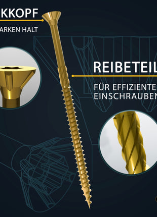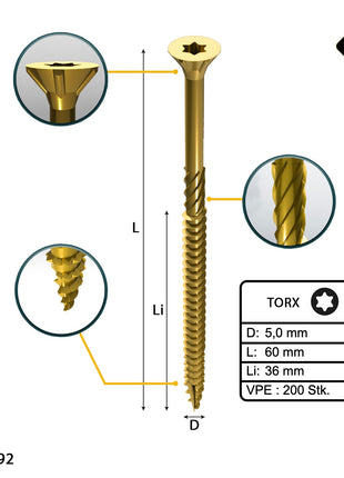 FORTE Tools Universal Holzschraube 5,0 x 60 mm T25 200 Stk. ( 000051399487 ) gelb verzinkt Torx Senkkopf Teilgewinde