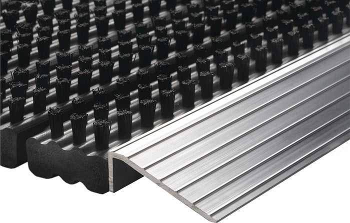 mit einseitiger Aluminium-Anlaufkante in silber · schwarze Reinigungsbürsten aus 100 % PP · Stärke ca. 22 mm · für den Außenbereich