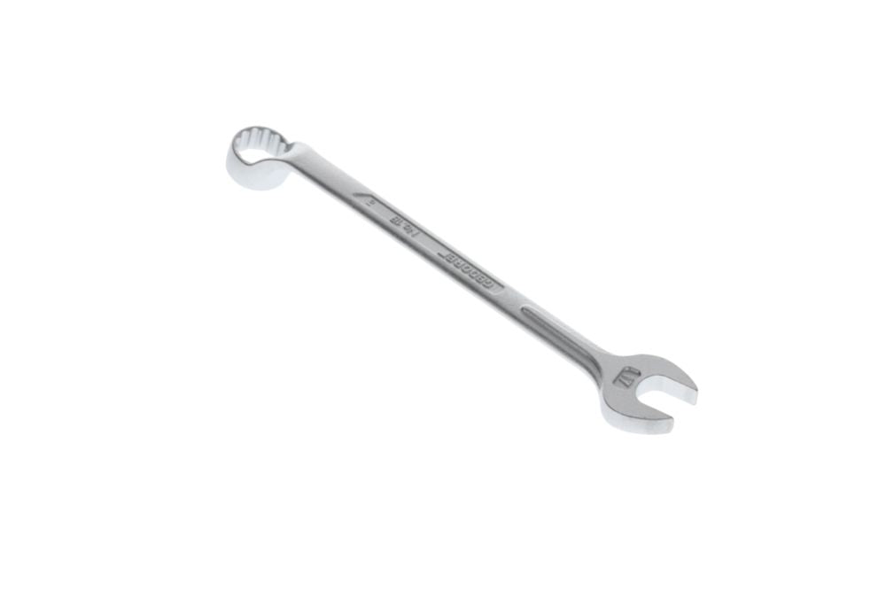 CV-Stahl · verchromt · mit gleichen Schlüsselweiten · Ringseite gekröpft und 10° abgewinkelt, Maulstellung 15° DIN 3113 Form B / ISO 3318 / ISO 7738