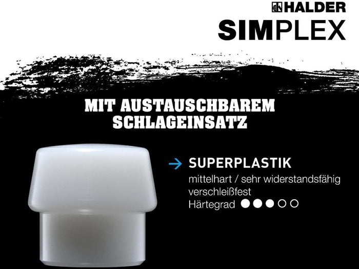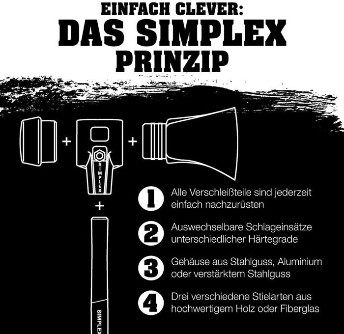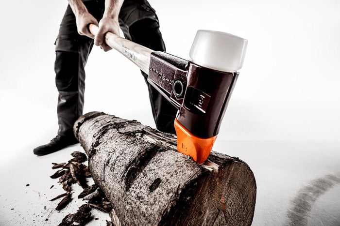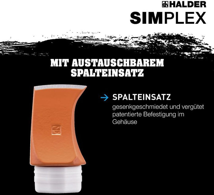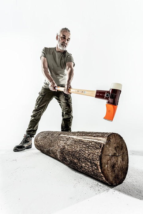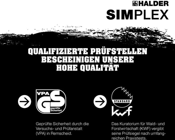 Der SIMPLEX-Spalthammer von Halder vereint zwei Werkzeuge in Einem · einen Spalthammer und einen Schonhammer in absoluter Profiqualität und bietet somit eine erhebliche Kostenersparnis gegenüber dem Einzelkauf. Die hohe Produktqualität ist vom Kuratorium für Waldarbeit und Forsttechnik (KWF) attestiert. Der aus hochwertigem Carbonstahl geschmiedete Spalteinsatz sorgt aufgrund seiner Wendenase für eine extrem gute Spaltwirkung. Diese wird durch 4.100g Gesamtgewicht und eine hohe Kopflastigkeit zusätzlich unterstützt. Der Superplastik-Einsatz mit D60mm ist ein mittelharter Kunststoff-Einsatz aus extrudiertem · extrem homogenem Material. Im Vergleich zu gespritzten Plastik-Einsätzen ist er dadurch wesentlich verschleißfester und widerstandsfähiger. Durch den Einsatz dieser Schonseite bei Keilarbeiten wird die Verletzungsgefahr durch Metallsplitter komplett vermieden · Kunststoff- und Aluminiumkeile haben eine wesentlich höhere Lebensdauer. Das Gehäuse aus Temperguss besitzt eine integrierte Stielschutzhülse · die für eine hohe Bruchsicherheit sorgt. Der langfaserige · sehr stabile Hickory-Stiel ist lackiert und ergonomisch geformt. Der Lederschneidschutz schützt beim Transport vor Verletzungen. Gemäß dem cleveren SIMPLEX-Prinzip sind alle Komponenten austauschbar und nachrüstbar. Dies schont nicht nur den Geldbeutel · sondern auch Ressourcen. Produktmerkmale: 2 Werkzeuge in 1: Spalthammer plus Schonhammer · eine erhebliche Kostenersparnis gegenüber dem Einzelkauf. Aus hochwertigem Carbonstahl geschmiedeter Spalteinsatz sorgt aufgrund seiner Wendenase für extrem gute Spaltwirkung. Keine Verletzungsgefahr bei Keilarbeiten durch Metallsplitter aufgrund des Superplastik-Einsatzes in D60mm (weiß · mittelhart · sehr widerstandsfähig). Wesentlich längere Lebensdauer von Kunststoff- und Aluminiumkeilen. Schonendes Einschlagen von Holzpfählen. Gehäuse aus Temperguss mit integrierter Stielschutzhülse und hoher Bruchsicherheit. Langfaseriger · sehr stabiler Hickory-Stiel · lackiert und ergonomisch geformt. Alle Teile sind austauschbar / nachrüstbar · somit sehr wirtschaftlich und Ressourcen schonend. Inkl. Lederschneidschutz. 4.100g Gesamtgewicht. Anwendungsgebiete Motormanuelle Holzernte · sicheres und materialschonendes Einschlagen von Stahlkeilen mit Schoneinsatz · Spalten von Meterholz · Keilarbeiten in der Fällung · schonendes Einschlagen von Holzpfählen · Garten-/Landschaftsbau Werkstoff Stiel Hickory Schlageinsatz 1 Spalteinsatz aus hochwertigem Carbonstahl · gesenkgeschmiedet und vergütet · mit Wendenase inkl. Kunststoffhülse inkl. Lederschneidschutz Schlageinsatz 2 Superplastik · weiß mittelhart sehr widerstandsfähig verschleißfest Gehäuse Temperguss Montage In den SIMPLEX-Spalthammer darf nur der Superplastik-Einsatz 3207.060 montiert werden. Spalteinsatz 3210.160 darf nur in Tempergussgehäuse 3011.160 montiert werden!