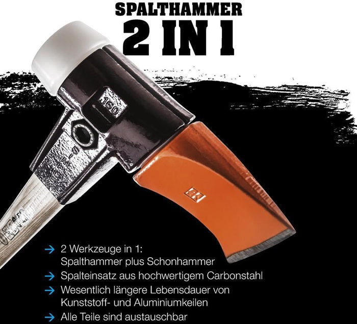 - Schlageinsatz 1: Spalteinsatz aus hochwertigem Carbonstahl, gesenkgeschmiedet/und vergütet, mit Wendenase/inkl. Kunststoffhülse/inkl. Lederschneidschutz