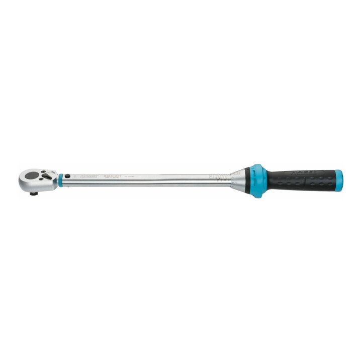 mit Umschaltknarre · für Rechtsgang · automatische, deutlich hör- und spürbare Kurzwegeauslösung beim Erreichen des vorgewählten Drehmomentes · Auslösegenauigkeit ± 3 % vom eingestellten Skalenwert (in Betätigungsrichtung) · Befestigungsmöglichkeit für Seilschlaufe durch Öffnungen am Verriegelungs-Drehkranz · dauerhafte Lesbarkeit durch Laserbeschriftung der Skalenhülse · Abrollschutz · Einstellhilfe durch Rastpunkte gewährleistet sicheres und schnelles Einstellen des gewünschten Drehmomentwertes durch Drehen des Griffes · 2-Komponentengriff · Schloss-Symbole signalisieren den jeweiligen Verriegelungszustand