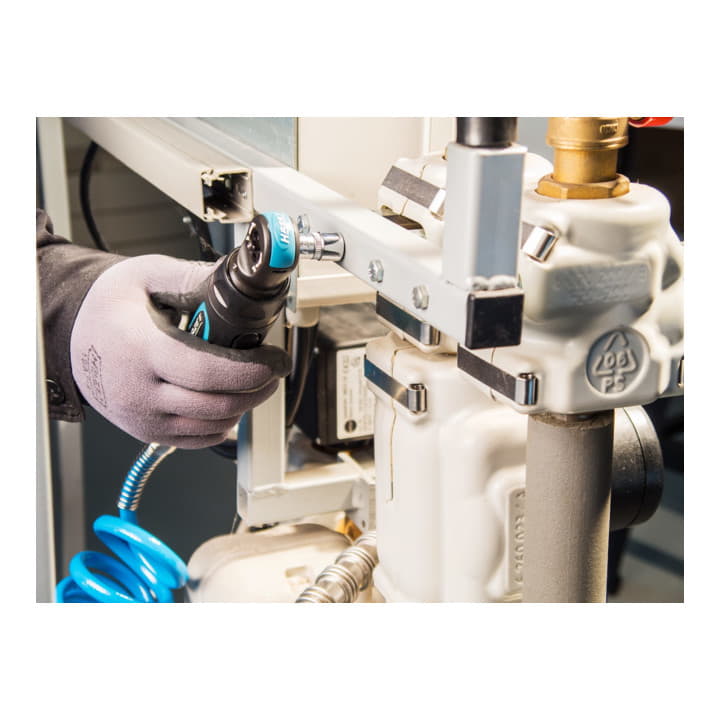 für Handnachzug mit Drehmomenten > 60 Nm · komplett geschlossener Kopf verhindert den Eintritt von Spänen · vibrationsarm · kälteisolierender Griff · Rechts-/Linkslauf: einstufig · Hebelventil