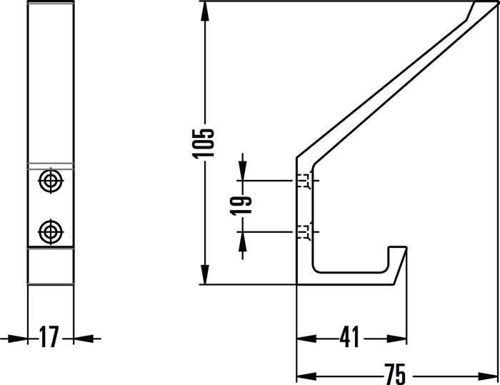 Einfachhaken · Aluminiumprofil silberfarbig eloxiert · 2 Befestigungslöcher