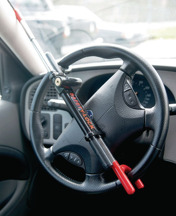 Diebstahlsicherung · universal passend · Lenkradblockade durch safety lock · schnelle und einfache Montage · passend für Lenkräder mit einem Innendurchmesser von 27-36 mm · spezielles Sicherheitsschloss mit 2 Sternschlüsseln · sehr stabile Ausführung