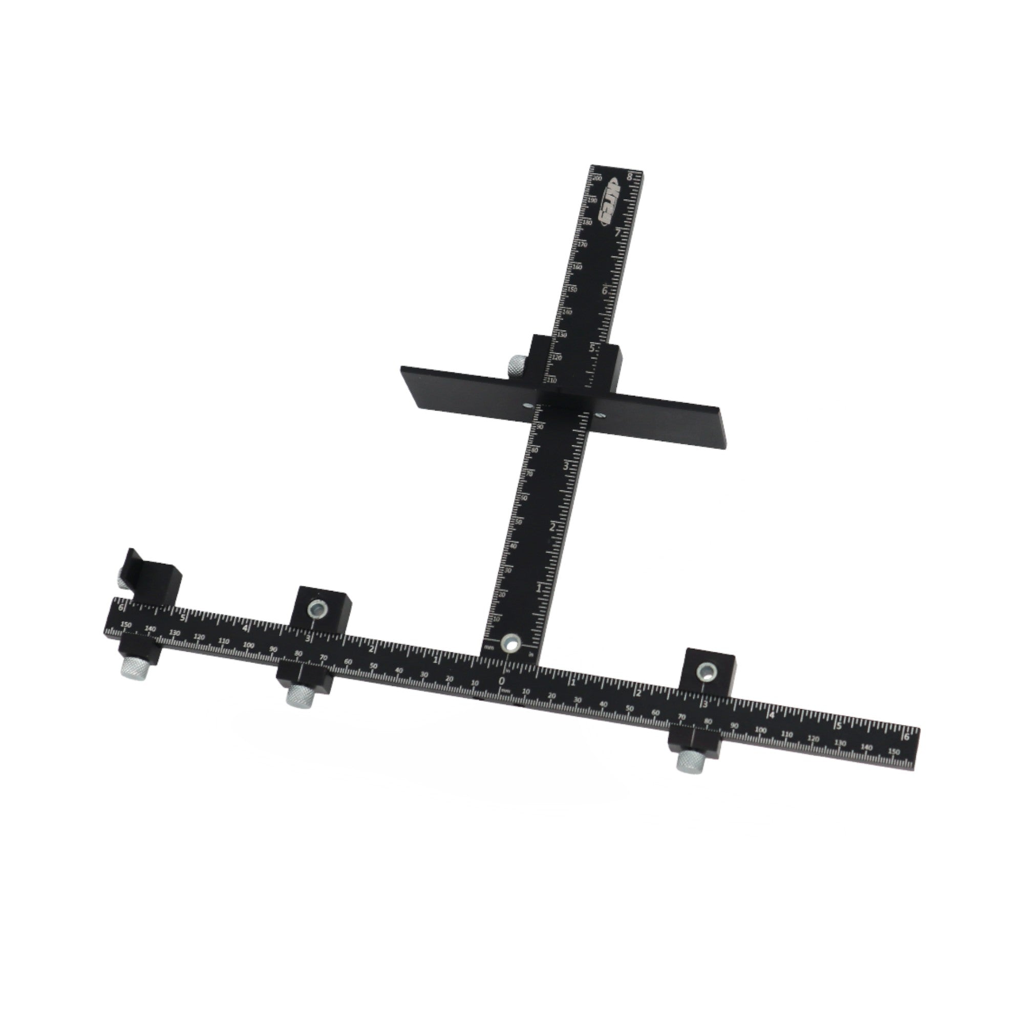 Die XL Bohrschablone für Möbelgriffe bietet eine präzise Lösung für die Montage von Bügel- und Knopfgriffen mit einem Bereich von 41 mm bis 310 mm Abstand. Sie verfügt über verschiebbare Endanschläge und integrierte Messskalen für exakte Platzierungen sowie einrastende Bohrerführungen aus gehärtetem Stahl, die das Bohren erleichtern. Ihre Vielseitigkeit erlaubt die Anwendung bei fast allen Griffarten und ihre beidseitige Nutzbarkeit für Türen macht sie besonders praktisch. Dank ihrer robusten Aluminiumkonstruktion und der Nutzung einer 4,5 mm Bohrhülse ermöglicht sie wiederholgenaue, professionelle Installationsergebnisse.