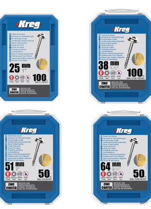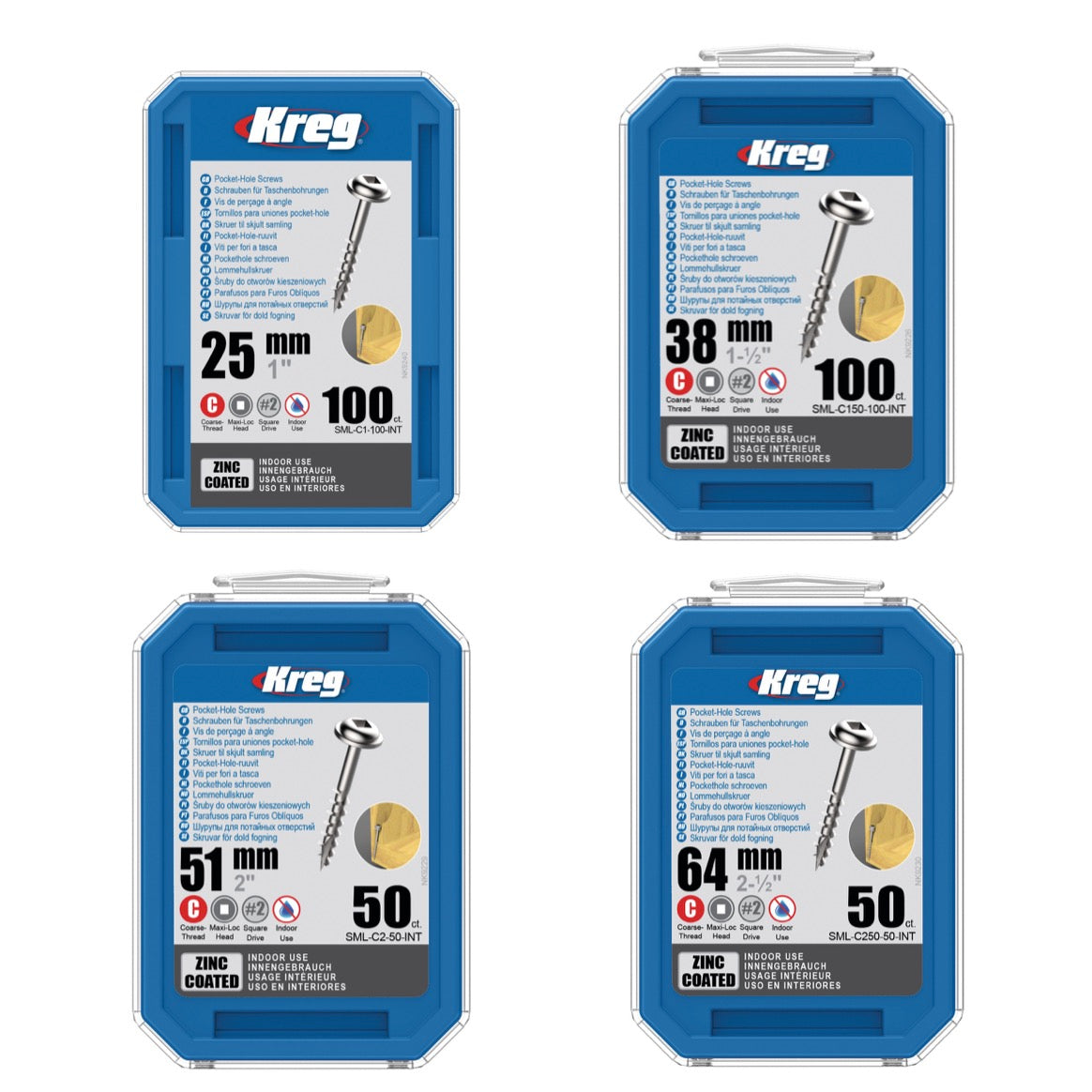 KREG Pocket-Hole Linsenkopfschrauben SML-C Starter Set Maxi 600 Stk für den Innengebrauch Vierkantantrieb Teilgewinde Grobgewinde selbstschneidend verzinkt