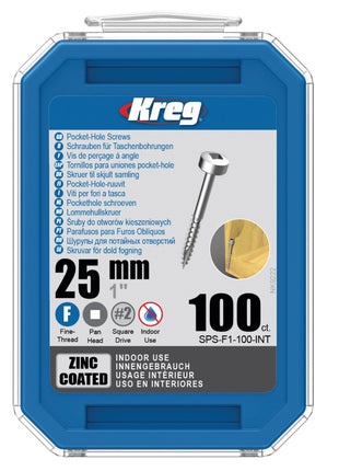 KREG Pocket-Hole Zylinderkopfschraube 25mm 500Stk. ( SPS-F1-500 ) Vierkant Antrieb Teilgewinde Feingewinde selbstschneidend verzinkt