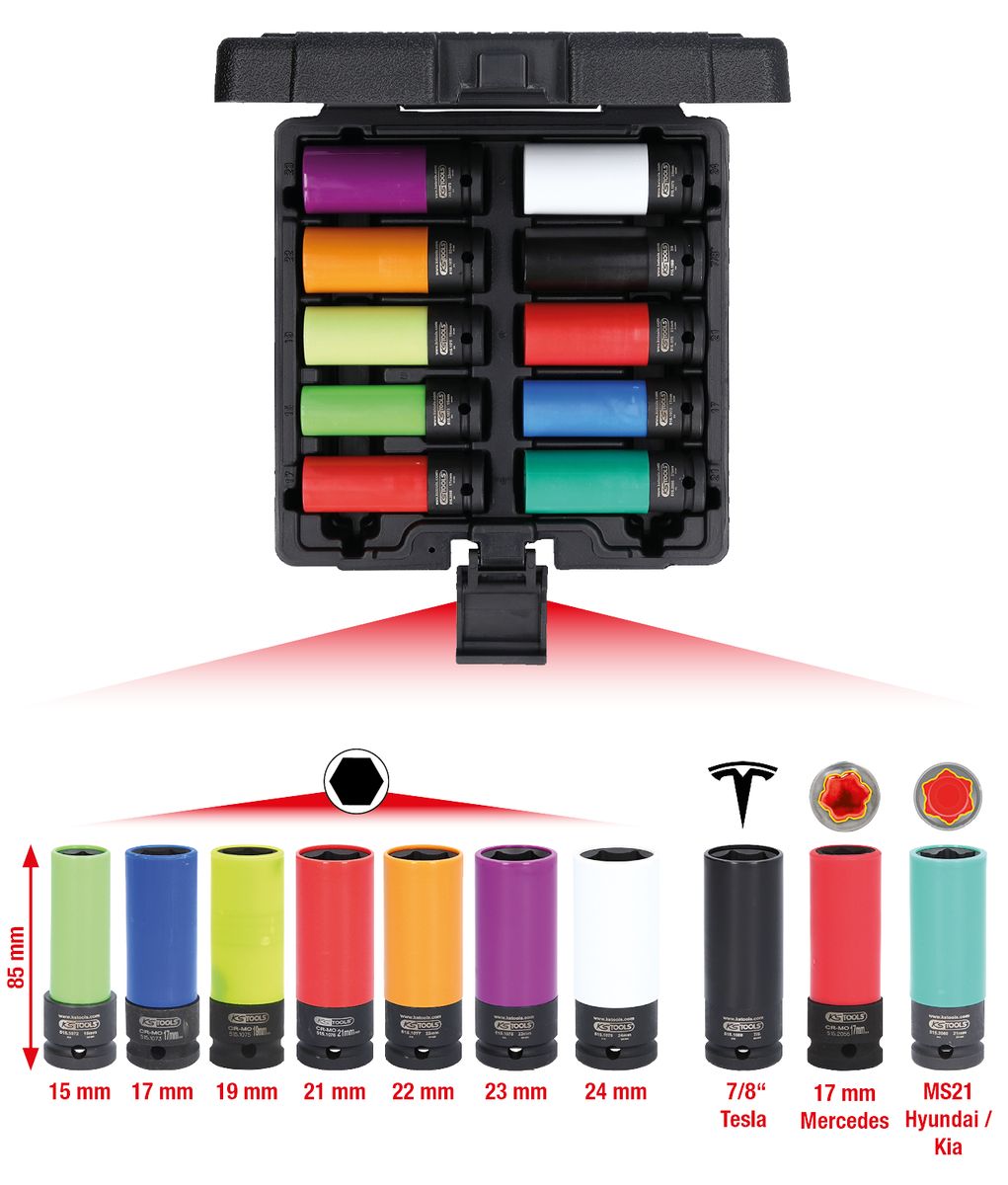 KS TOOLS 1/2" Spezial-Alu-Felgen Kraft-Stecknuss-Satz, 10-tlg ( 515.0890 )