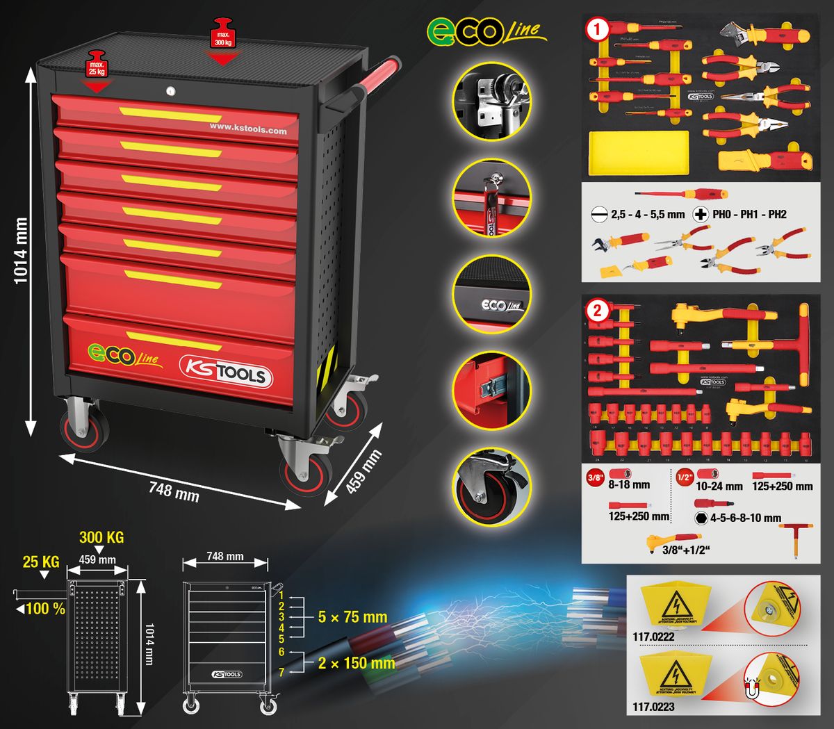 ECOline Werkstattwagen mit 42 isolierten Werkzeugen für Hybrid- und Elektrofahrzeuge · ECOline Werkstattwagen mit 42 isolierten Werkzeugen für Hybrid- und Elektrofahrzeuge