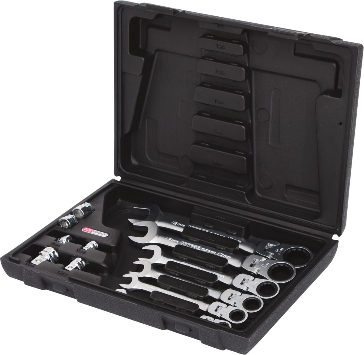 KS TOOLS GEARplus Gelenk-Ratschenringmaulschlüssel-Satz, 12-tlgfeststellbar mit Adapter ( 503.4867 )