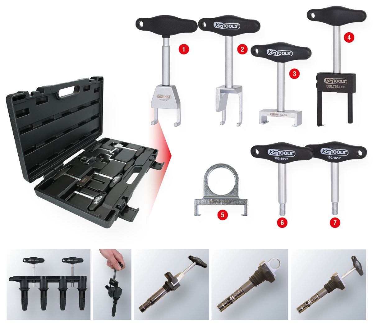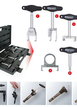 KS TOOLS T-Griff-Zündspulen-Abzieher-Satz für VAG und Opel Motoren, 7-tlg ( 500.7570 )