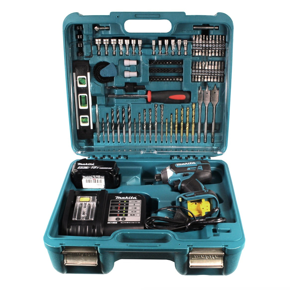 Makita DTD 152 SMTK Akku Schlagschrauber 18V 165Nm + 1x Akku 4,0Ah + Ladegerät + 101tlg. Zubehörset im Koffer