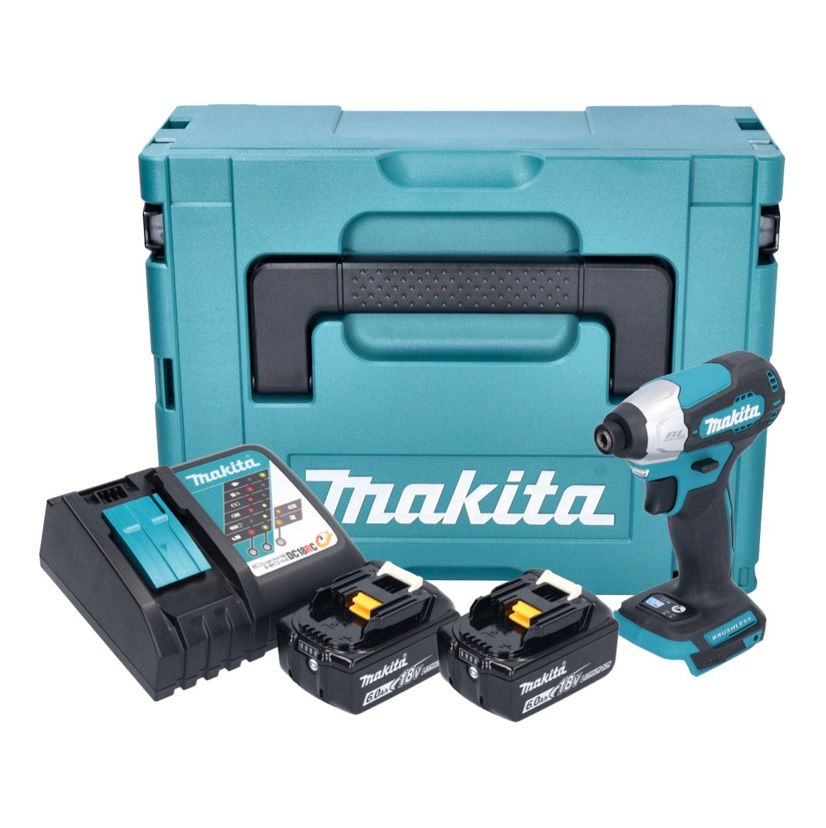 Makita DTD 157 RGJ Akku Schlagschrauber 18 V 140 Nm 1/4" Brushless + 2x Akku 6,0 Ah + Ladegerät + Makpac