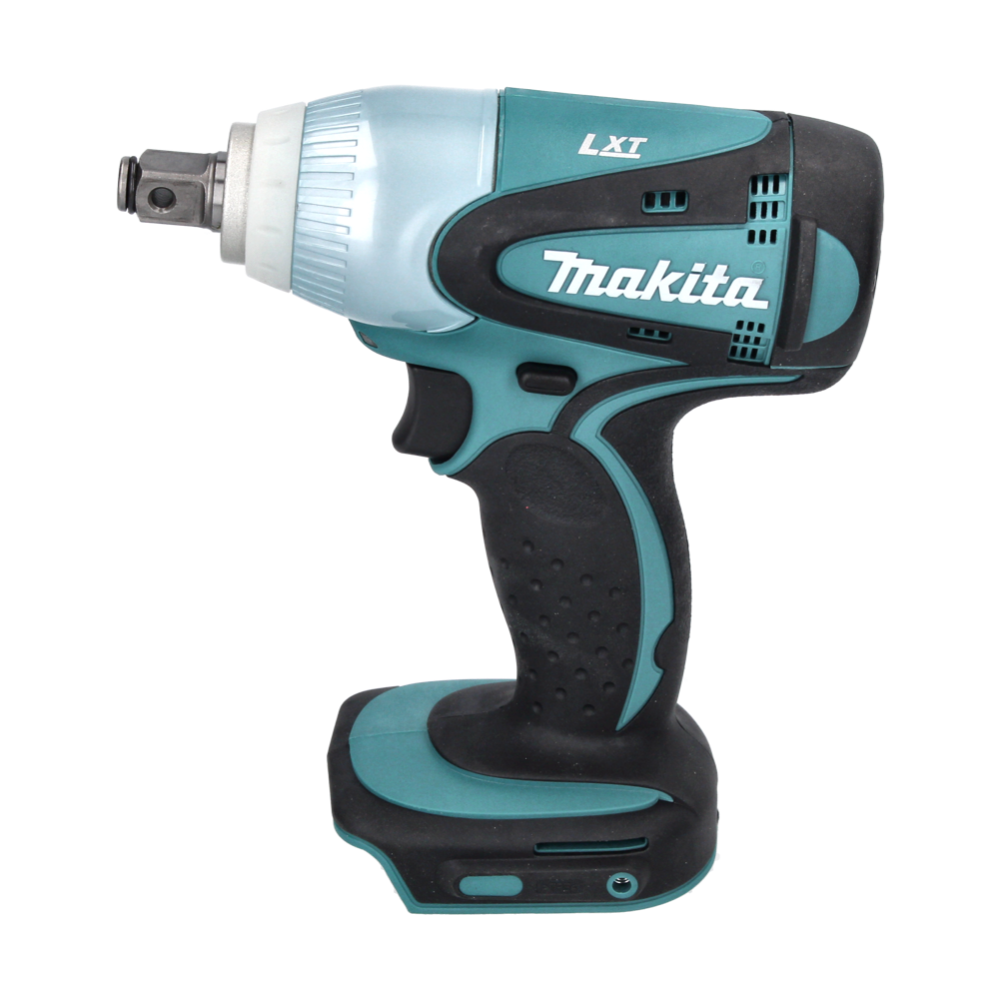 Der handliche Makita DTW 251 Akku Schlagschrauber besticht durch seine kurze Bauform von nur 165 mm sowie seinen 4-poligen Motor, der ohne Drehmomentverlust und bei geringer Stromentnahme arbeitet. Der Akku Schlagschrauber verfügt zudem über eine stufenlose Drehzahlsteuerung per Elektronikschalter und einen Rechts-/Links-Lauf. Dank der starken 230 Nm Drehmoment sind anspruchsvolle Arbeiten und eine extrem hohe Schlagkraft garantiert. Verschraubungen mit den Durchmessern M10 - M16 sind für den Schlagschrauber kein Problem. Die 1/2 " Außenvierkantaufnahme überträgt große Kräfte ideal und ist kompatibel mit allen gängigen Steckschlüsseln mit 1/2" Innenvierkant Antrieb. Die Motorbremse bietet ein hohes Maß an Sicherheit und Schutz für den Schlagschrauber. Der ergonomisch gummierte Griff bietet eine komfortable Handhabung für den Anwender. Mit der leuchtstarken LED wird die Werkzeugspitze des DTW 251 optimal ausgeleuchtet.