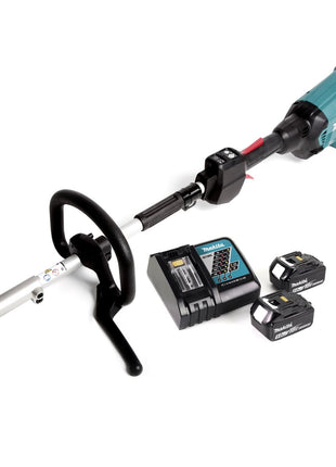 Umweltschonend und extrem kraftvoll, dass ist der DUX 60 Multifunktionsantrieb von Makita. Über 10 verschiedene Aufsätze ( nicht im Lieferumfang ) können angesteckt werden. Somit ist die Kosteneffizienz unschlagbar, man benötigt lediglich den passenden Aufsatz und keine Vielzahl an Geräten. Ob als Heckenschere, Kettensäge, Rasentrimmer, Sense, Bodenschneider oder Kehrbesen es scheint so als ob er alles kann. Alle Einsatzwerkzeuge sind komplett werkzeuglos wechselbar. Zwei 18 Volt Akkus ( nicht im Lieferumfang ) versorgen das Gerät mit extrem viel Power. Es ist empfohlen immer zwei gleiche Akkus zu verwenden. Makita hat den DUX 60 Multifunktionsantrieb mit der neusten Technologie ausgestattet, so ist er mit Xtreme Protect Technologie ( XTP ) optimal gegen Staub und Spritzwasser geschützt. Der leistungsstarke Motor verfügt über die Active Feedback sensing Technologie, welche das Gerät sofort beim Blockieren stoppt. Die dreistufige elektronische Drehzahlregulierung ist für sämtliche Anwendungen ausgelegt. Die Drehrichtungsumkehr ermöglicht die Entfernung von Grasschnitt. Der höhenverstellbare Rundgriff am Gerät ist individuell einstellbar auf Körpergröße, Aufsätze und die gegebenen Arbeitsbedingungen. Durch den im Lieferumfang enthaltenen Schultergurt ist ein kraftsparendes Arbeiten möglich.
