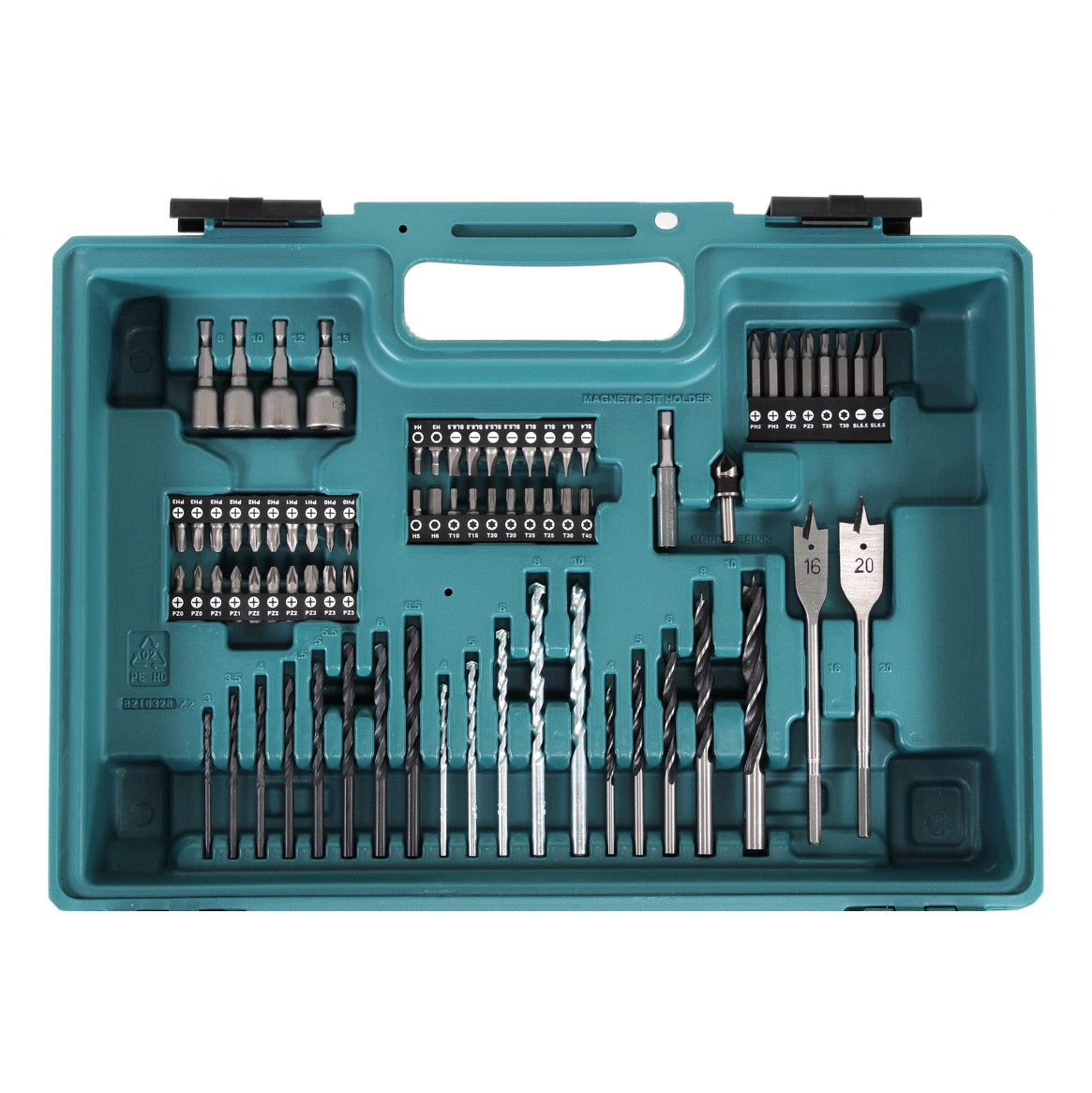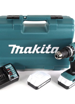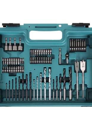 Makita HP 457 DWE 18 V Akku Schlagbohrschrauber + 2 x 1,3 Ah Akku + Ladegerät + 74 tlg. Zubehör Set im Werkzeugkoffer