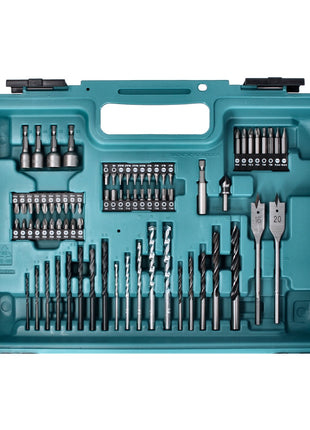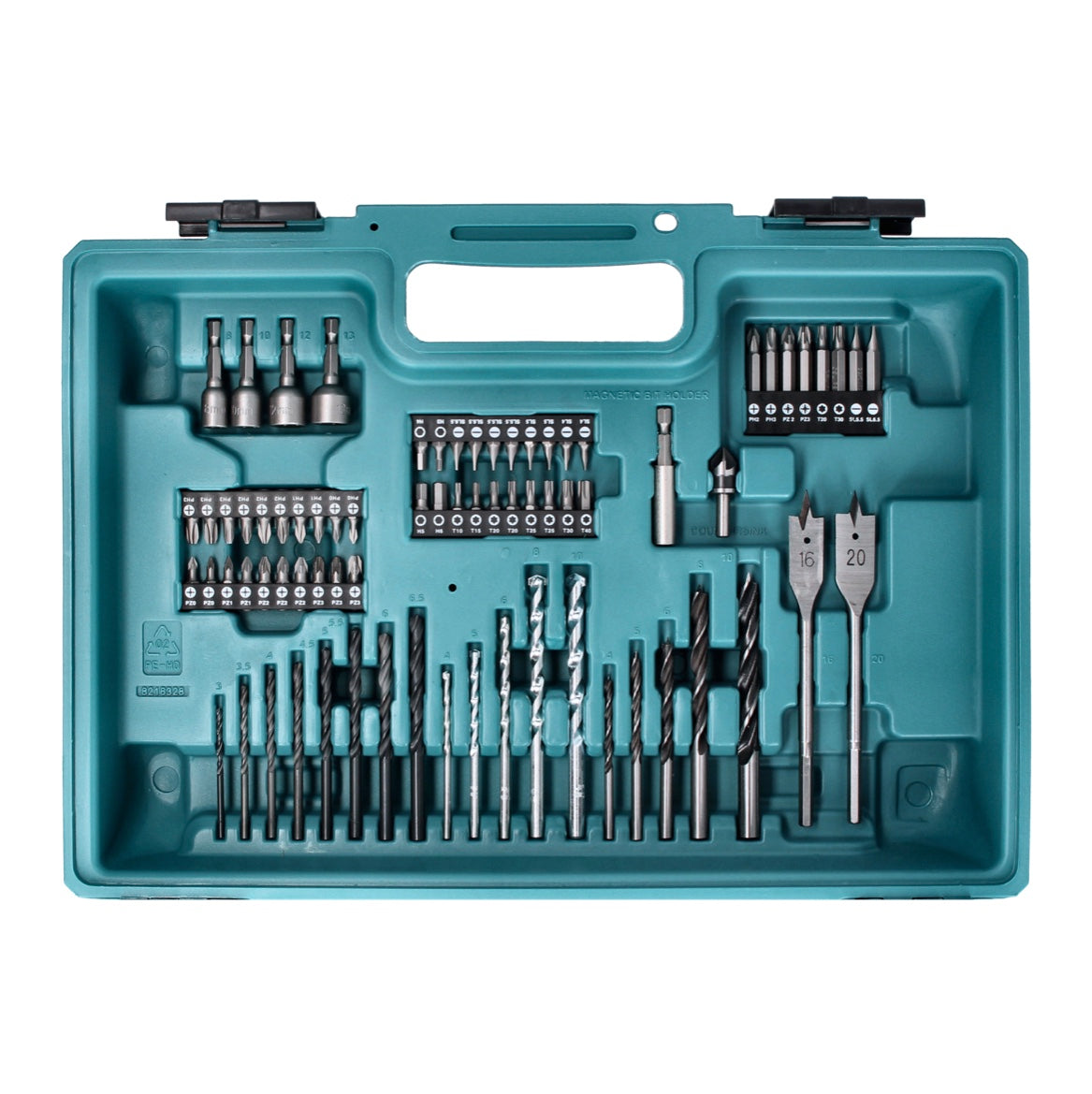 Makita HP 457 DWE10 Akku Schlagbohrschrauber 18 V 42 Nm G-Serie + 2x Akku 1,5 Ah + Ladegerät + 74 tlg. Bit Bohrer Set + Koffer