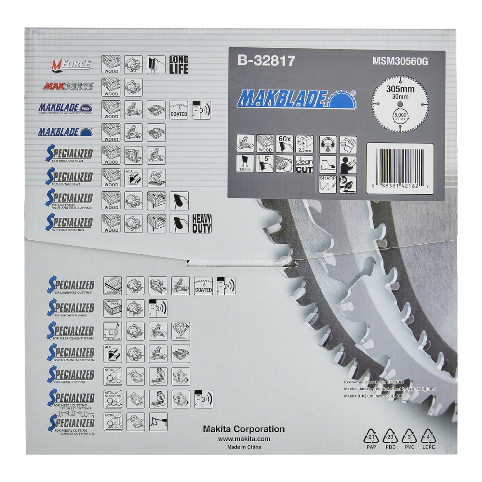 - 1x Makita MAKBLADE Kreissägeblatt 305 x 30 x 2,3 mm 60 Zähne ( B-32770 )
