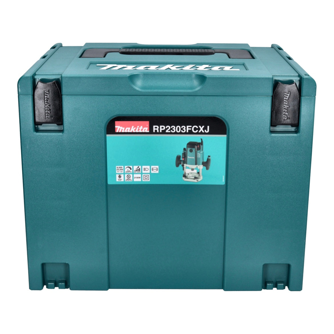 Makita RP 2303 FCXJ Oberfräse 2100 Watt 70 mm Hub + Anschlag + 15 tlg. Fräser Set + Makpac