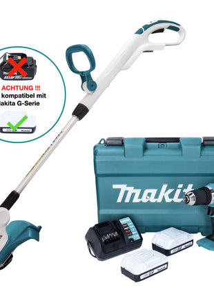 Makita UR 180 DZ Akku Rasentrimmer 18 V 260 mm G-Serie + DF 457 DWE Akku Bohrschrauber 18 V 42 Nm + 2x Akku 1,5 Ah + Ladegerät + Koffer