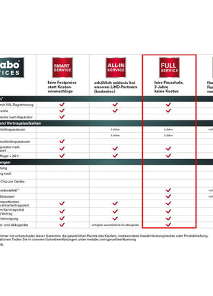 Metabo Full Service Code Karte 3 Jahre Rundum Schutz ( 144207110 ) Preisgruppe 3