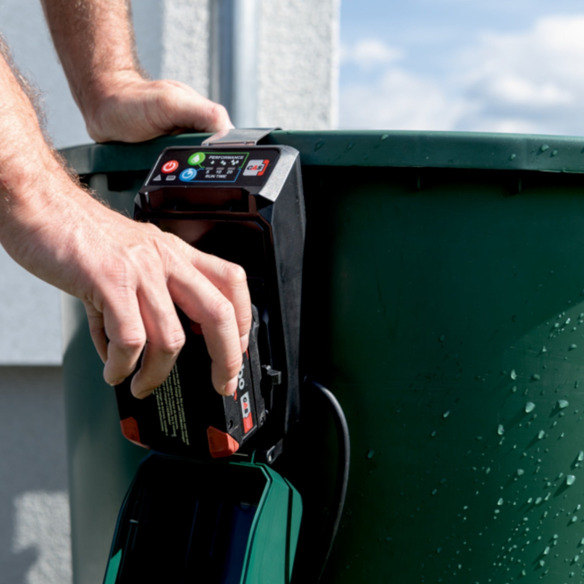 Die Metabo TPF 18 LTX 2200 Akku Tauch- und Regenfasspumpe ist die perfekte Lösung für flexible und umweltfreundliche Wasserförderung. Mit zwei Funktionen ausgestattet, lässt sie sich mühelos als Tauch- oder Regenfasspumpe einsetzen, ideal für die nachhaltige Gartenbewässerung mit Regenwasser oder das Auspumpen von Klarwasser aus Behältern, Pools oder überfluteten Kellern. Dank der werkzeuglosen Abnahme des Pumpenfußes erfolgt der Wechsel zwischen den Modi schnell und einfach. Die Pumpe arbeitet flachabsaugend bis zu einem Restwasserstand von nur 1-2 mm, wodurch sie besonders gründlich ist. Die externe Akkubox schützt den Akku vor Feuchtigkeit und lässt sich bequem an Wänden oder Behältern fixieren, während das übersichtliche Bedienpanel eine intuitive Steuerung ermöglicht. Mit der praktischen Timerfunktion können drei Laufzeiten eingestellt werden, perfekt für die Nutzung mit Gartenregnern. Die Pumpe bietet flexible Dosierungsmöglichkeiten für Druck und Wassermenge über drei Leistungsstufen und ein Regulierventil. Ihre schlanke Bauform (Ø 142 mm) und das lange Kabel zur Akkubox machen sie für zahlreiche Behälter geeignet. Für maximale Sicherheit sorgt die Metabo Pump Protection mit automatischem Trockenlaufschutz und LED-Anzeige. Das doppelte Dichtsystem und der Überlastschutz garantieren Langlebigkeit, während der waschbare Filter die Pumpe vor Verschmutzungen schützt. Ein robustes Gehäuse aus schlagfestem Kunststoff, eine integrierte Kabelaufwicklung und ein praktischer Tragegriff runden das Design ab. Zudem ist die Pumpe Teil des Cordless Alliance Systems (CAS) und kompatibel mit allen 18V-Akkupacks und Ladegeräten der CAS-Marken.