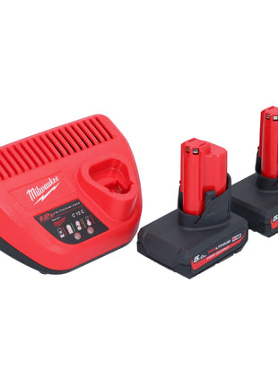 Milwaukee M12 HNRG-502 Akku Starter Set 2x HB5 High Output 12 V 5,0 Ah / 5000 mAh Li-Ion Akku ( 2x 4932480165 ) + M12-C12C Ladegerät