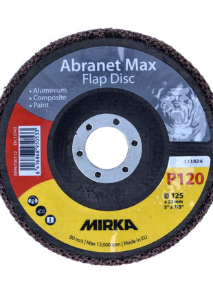 Mirka Abranet Max Flap disc T29 Set 125 mm 22 mm ALOX 120 20 Stück ( 20x 8896700112 ) Fächerscheibe für Aluminium, Verbundstoffe, Lack