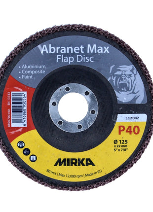 Mirka Abranet Max Flap Disc T29 Set 125 mm 22 mm ALOX 40 20 Stück ( 20x 8896700140 ) Fächerscheibe für Aluminium, Verbundstoffe, Lack