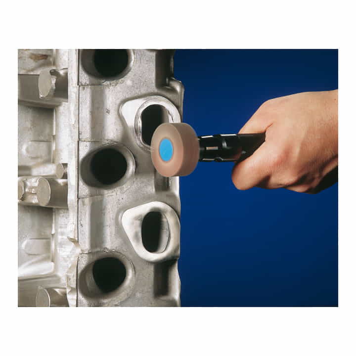 • Vorteile: Optimale Konturenanpassung durch hohe Flexibilität. Gleichbleibend hoher Materialabtrag über die gesamte Standzeit, da stetig neues, aggressives Schleifmittel freigesetzt wird. Stirnseitiger Einsatz sehr eng an Kanten und in Winkeln möglich durch flache Gießkernkonstruktion.
