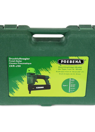 Prebena 2XR-J50 Druckluftnagler im Transportkoffer + Prebena Stauchkopfnägel Brads 50 mm 4000 Stück - aus verzinktem Stahl, geharzt