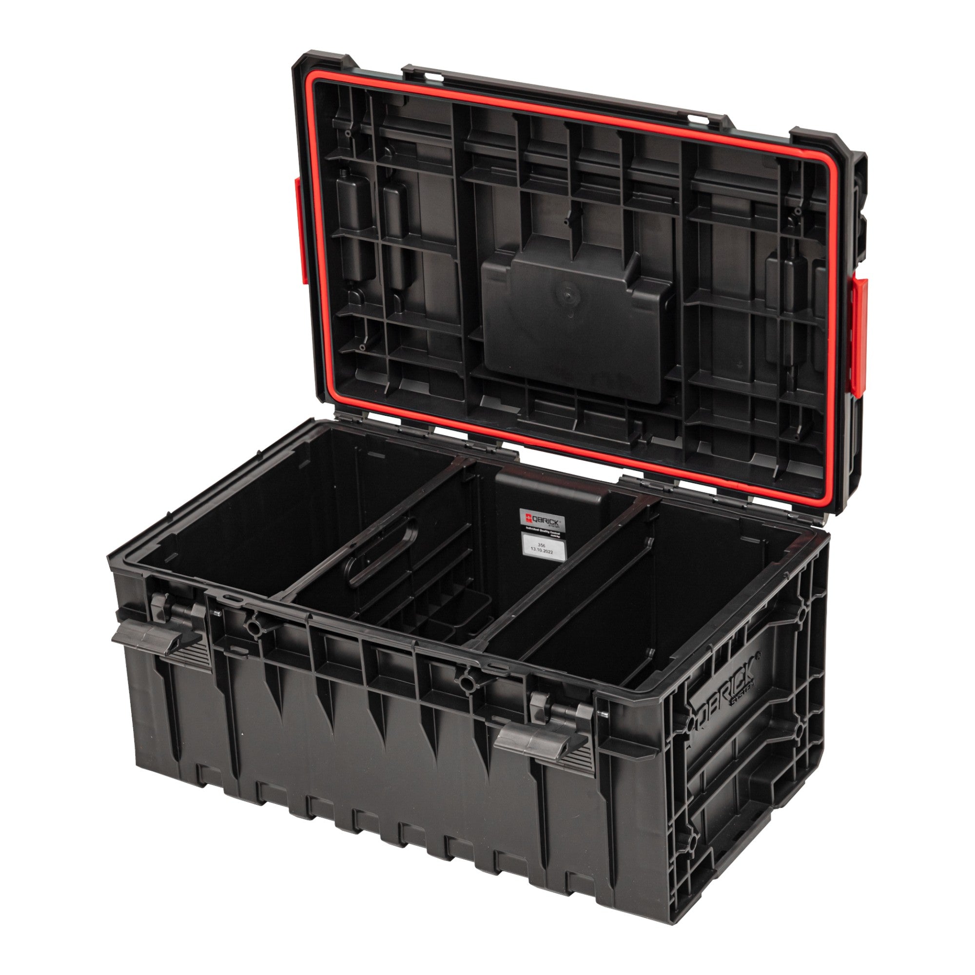 Der ONE 350 2.0 Vario Werkzeugkoffer bietet mit einem Volumen von 38 Litern Platz für große Elektro- und Handwerkzeuge. Er zeichnet sich durch seine Staub- und Wasserdichtigkeit sowie durch zwei verstellbare Fächer für eine übersichtliche Anordnung der Werkzeuge aus, wobei eines der Fächer als eigenständiger Werkzeugträger genutzt werden kann. Die VARIO-Abdeckung der Standardversion ermöglicht die Kombination mit verschiedenen Modellen der Qbrick System PRO-Linien, wobei die Verstärkung von Abdeckung und Körper eine hohe Belastbarkeit und Druckfestigkeit sicherstellt. Die zweite Generation der ONE-Serie, Version 2.0, führt ein verstärktes Design ein und bietet Anpassungsmöglichkeiten durch M8-Gewindeeinsätze, um den individuellen Bedürfnissen der Benutzer gerecht zu werden.