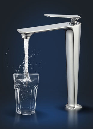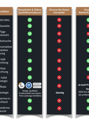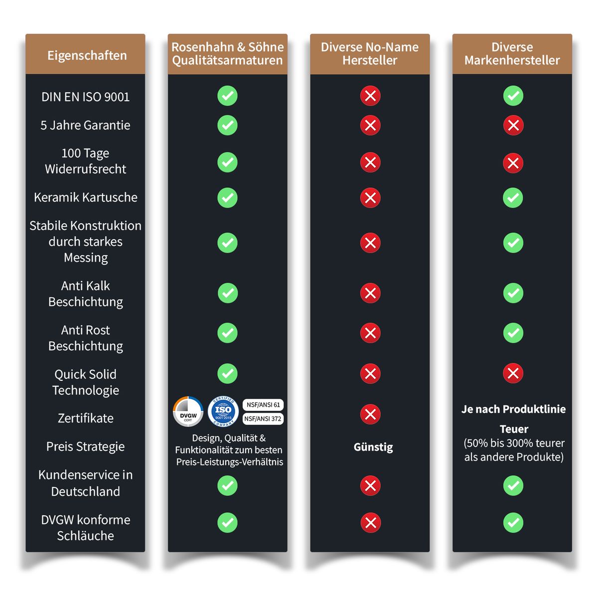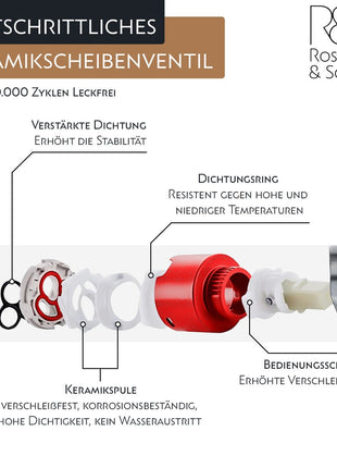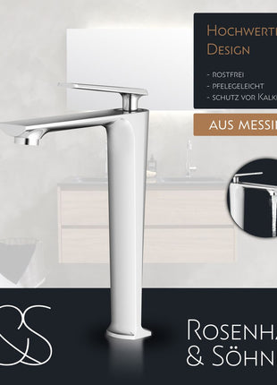 Rosenhahn & Söhne Vilm L Design Badarmatur Wasserhahn Badezimmer - Armatur Bad [Chrom] - Heiß + Kalt Waschtischarmatur + Anschlussschläuche