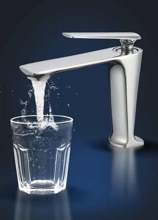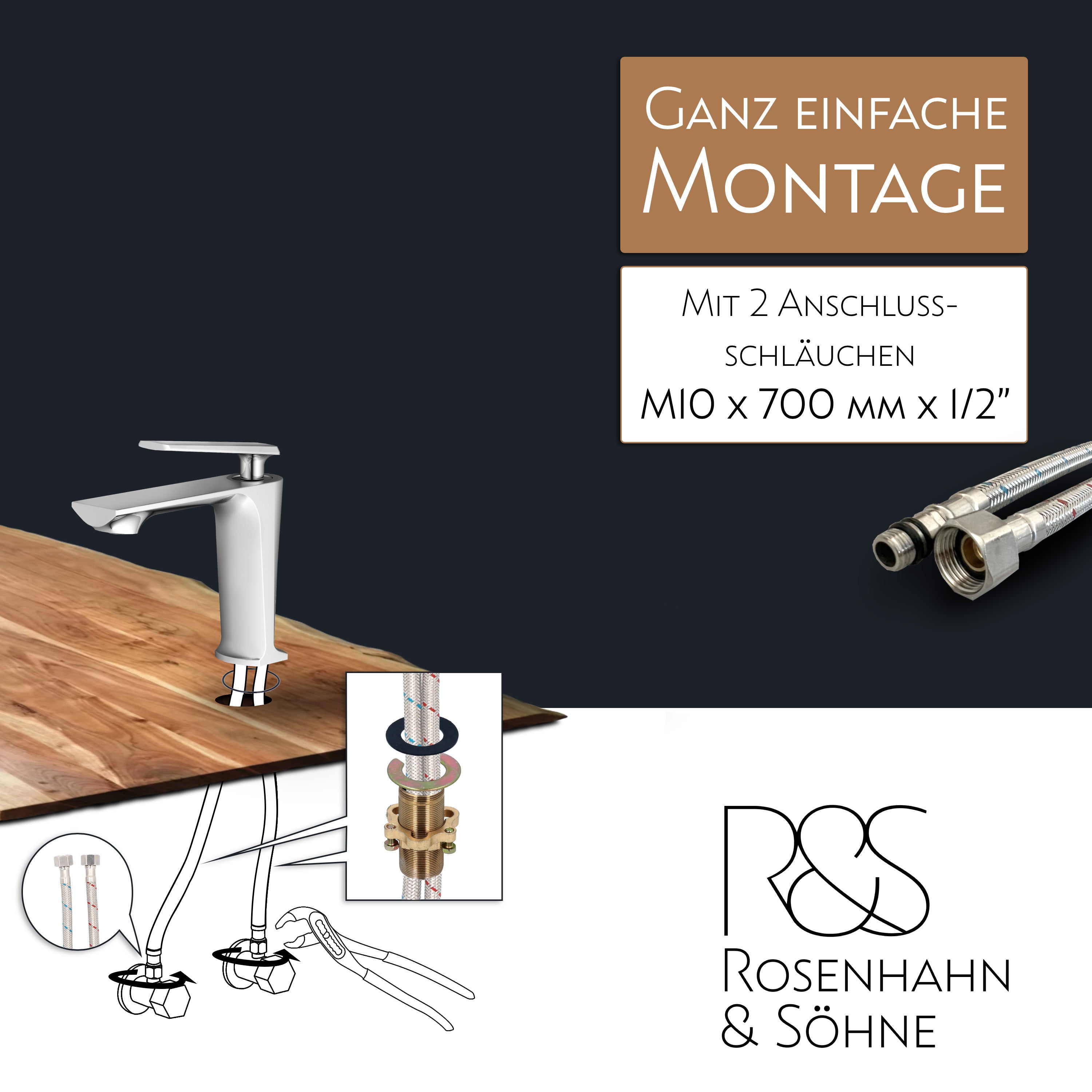Rosenhahn & Söhne Vilm M Design Badarmatur Wasserhahn Badezimmer - Armatur Bad [Chrom] - Heiß + Kalt Waschtischarmatur + Anschlussschläuche